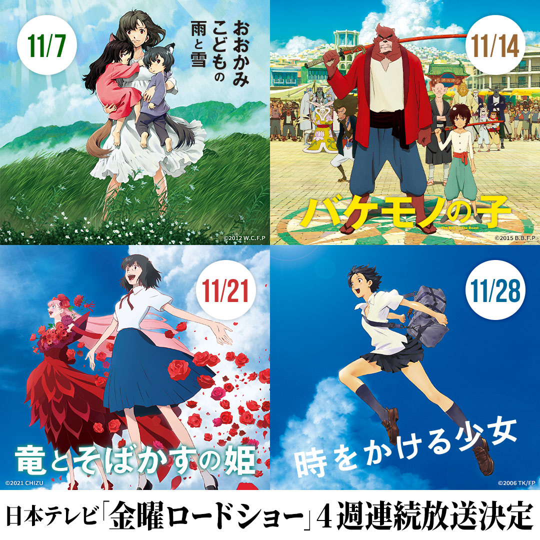 日本テレビ 金曜ロードショー4週連続細田守監督作品放送決定!
