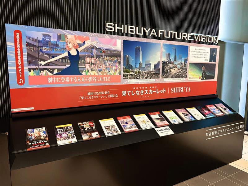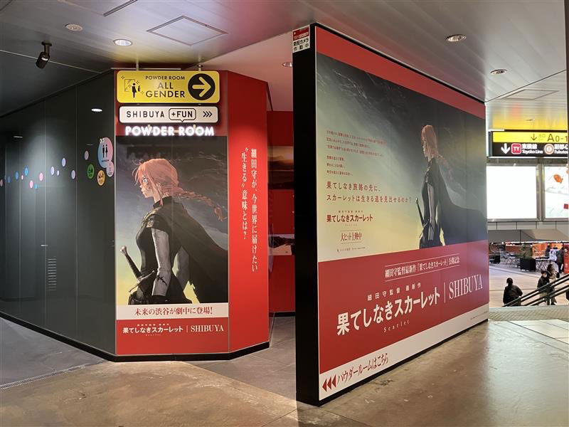 「映画『果てしなきスカーレット』|SHIBUYA」渋谷ヒカリエ11F&渋谷駅東口地下広場 パウダールームを特別装飾!本作には、渋谷駅前を舞台にしたシーンが登場します。劇中では“未来の渋谷”が描かれ、まちや人々がもつエネルギーや活気が鮮やかに表現されています。未来の渋谷での自分自身に出会い、「生きるとは何か?」を考えるきっかけに。